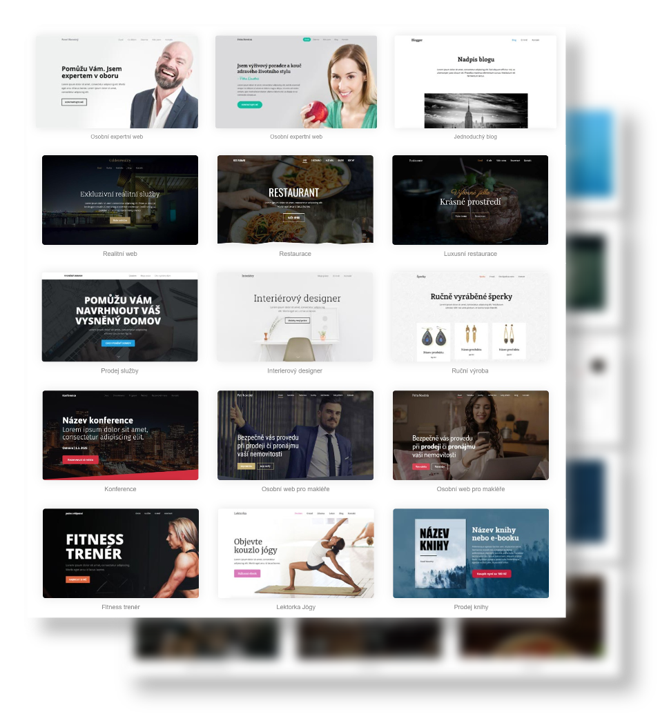 Přichystané šablony webů i jednotlivých stránek nebo bloků tak, abyste co nejlépe a nejrychleji vybudovali vaše podnikání.