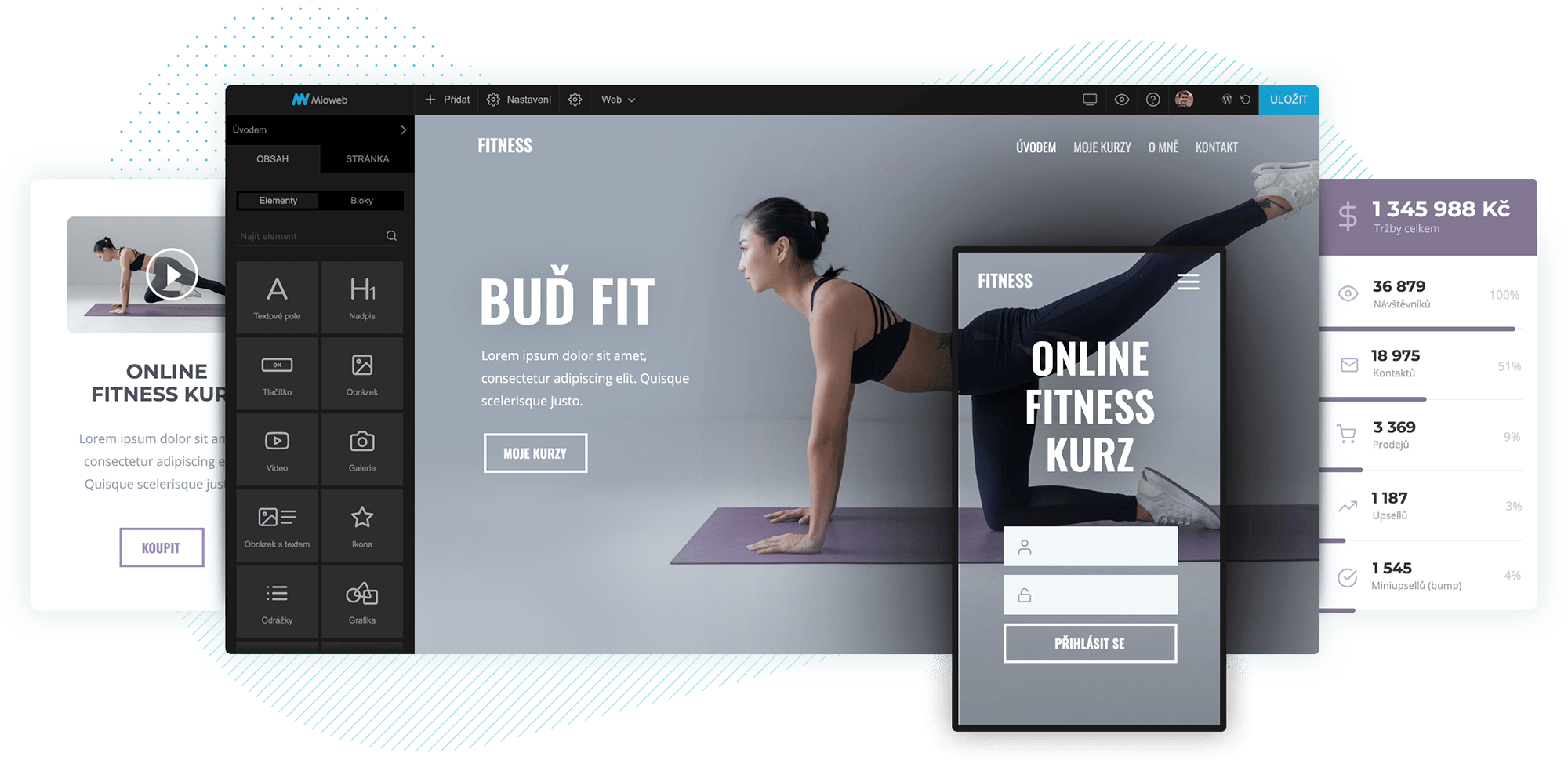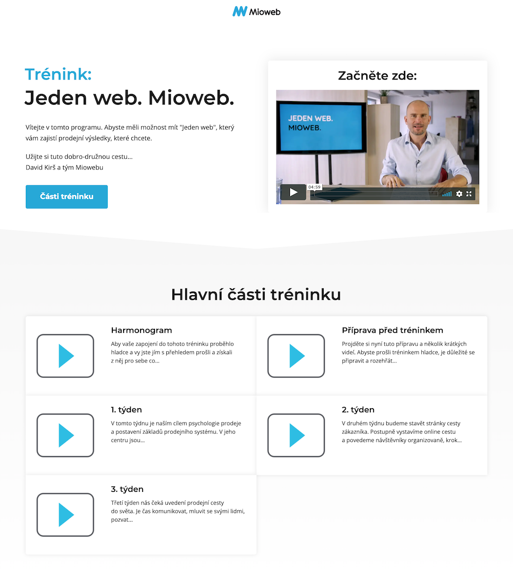 Plný přístup k přednímu českému nástroji na tvorbu online kurzů a prodejních funnelů Mioweb.